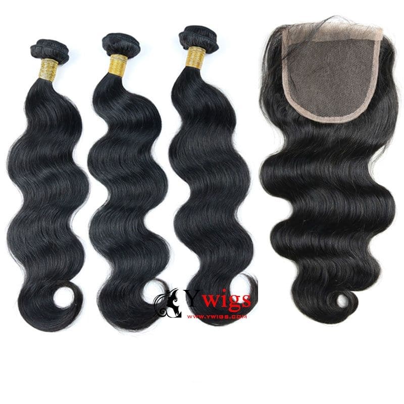 Natural Color Body Wavy Brazilian Hair Bundles with 5x5 HD Lace Closure PSB03
