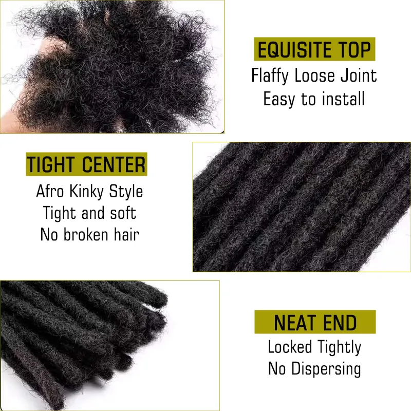 Human Hair Dreadlocks Extensions in Natural Black #1B offer a natural look with long-lasting quality. Made from real human hair, they provide easy styling and low maintenance, perfect for busy lifestyles. These extensions also carry cultural significance, allowing you to express your identity and style effortlessly.