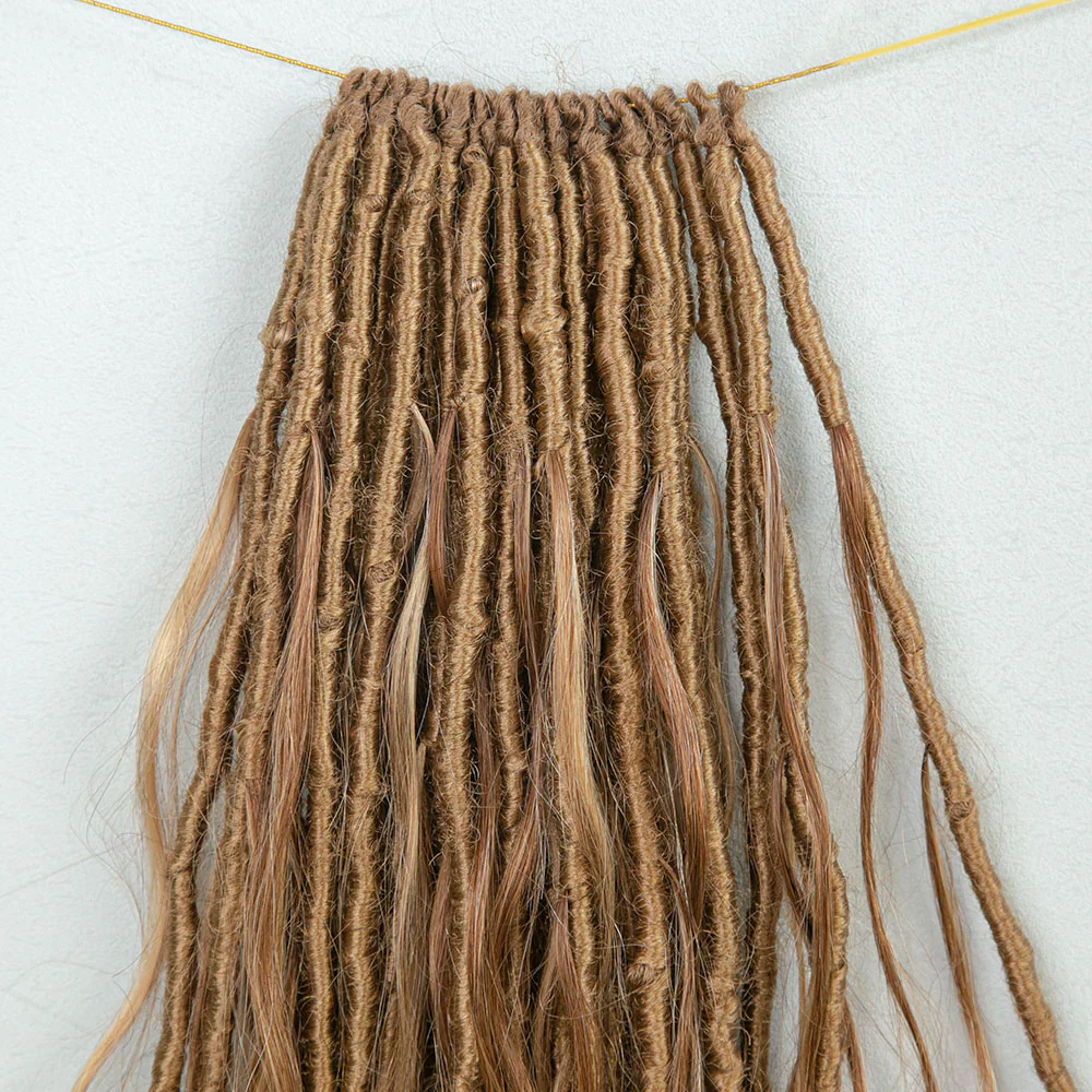 Mixed Blonde Brown Pre-looped Human Hair Crochet Goddess Locs With Body Wave Curls